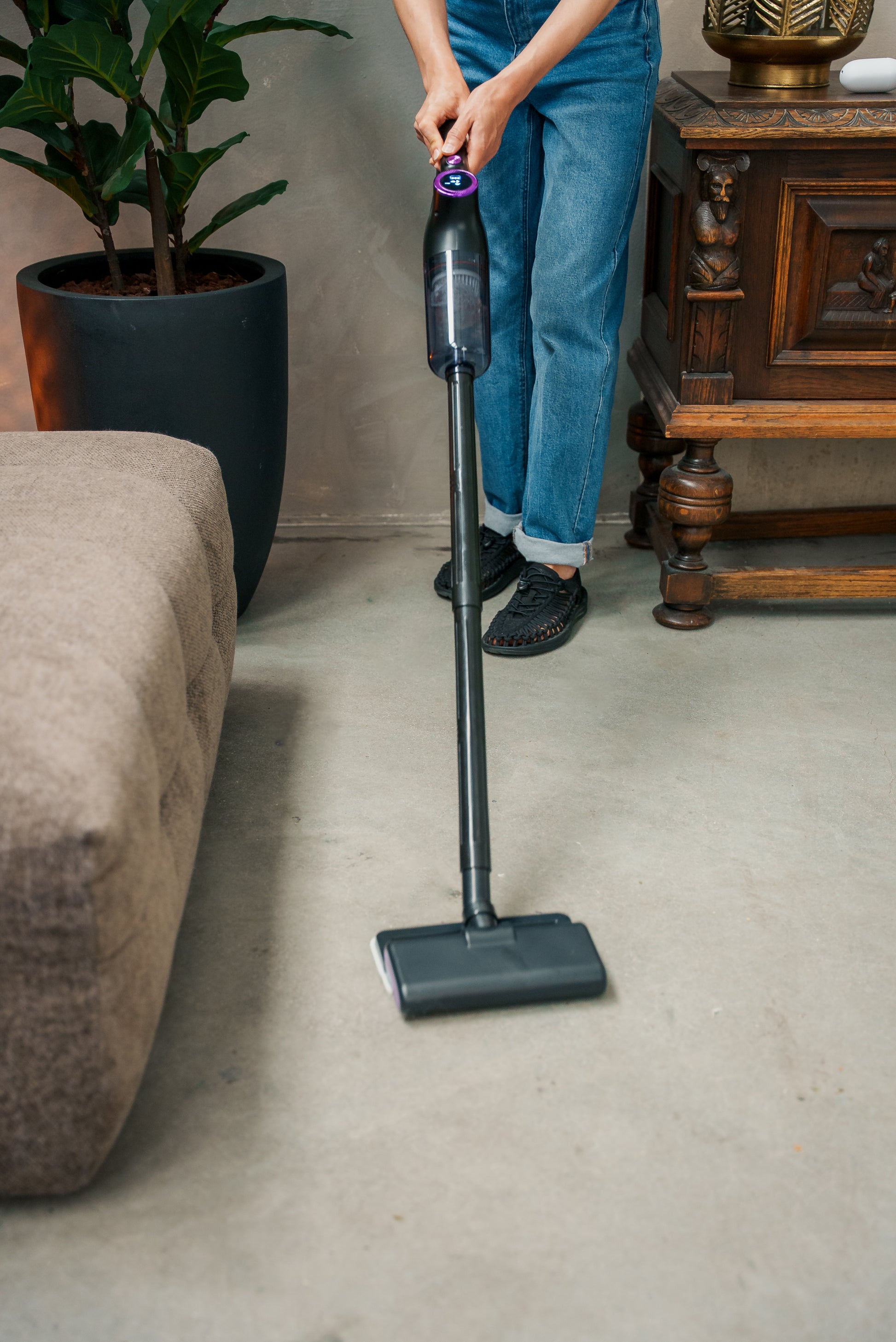 Den trådløse teknologi og lange batteritid giver frihed til at gøre rent overalt uden besvær. Beholderen kan hurtigt tømmes, og filteret kan skylles og genbruges, så vedligeholdelsen bliver enkel og hygiejnisk.